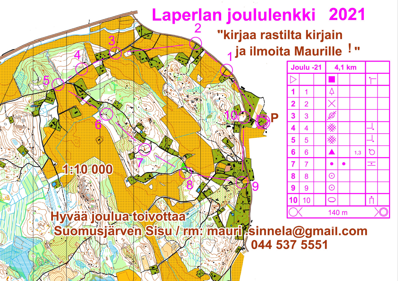 Viime vuoden tapaan Mauri on valmistellut joululenkin Laperlaan. 10-rastinen lenkki on pituudeltaan noin 4,1 km ja sopii koko perheelle. Lenkille voi lähteä vaikka Maurilasta (Alikylänraitti 4), jonka autotallista löytyy muutamia karttoja. Kartan voi tulostaa myös itse ohesta. Joka rastilla on kirjain, jotka keräämällä ja ilmoittamalla Maurille (sähköpostiosoite kartassa) voi arpaonni osua kohdalle.